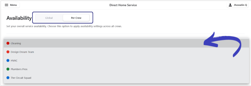 Choose between "Global" or "Per Crew" on the Availability Dashboard.