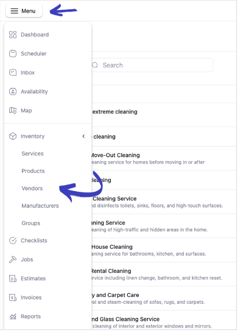 The Vendors Dashboard is easily accessible by navigating to Menu > Inventory > Vendors.