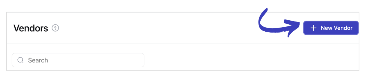 Click the blue "New Vendor" button in the top right corner of the Vendor Dashboard.